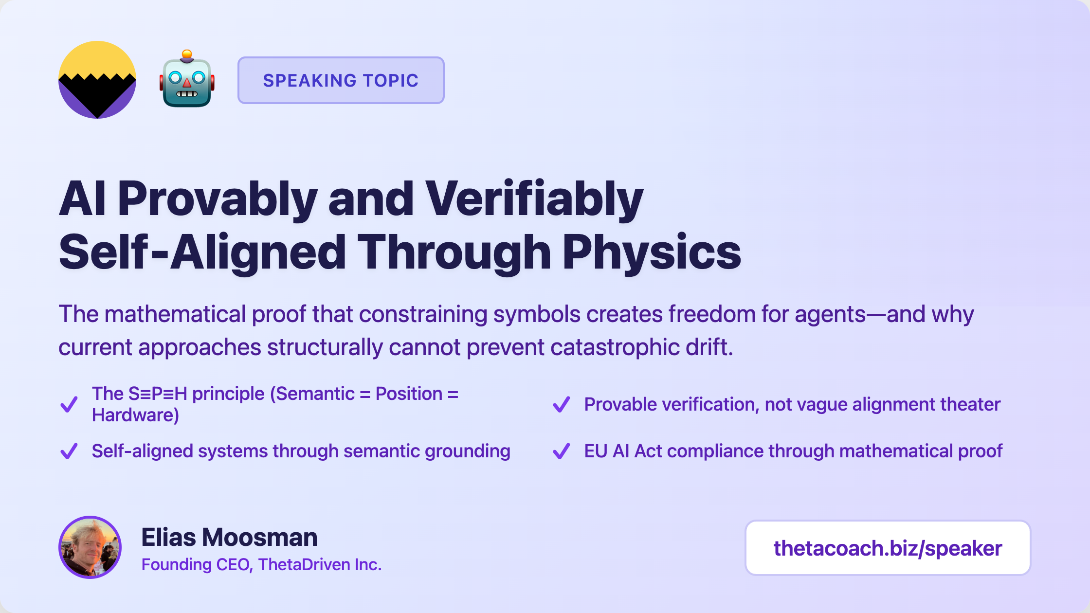 This isn't another "AI ethics" talk. It's a mathematical proof with working production systems. The floor is being poured.